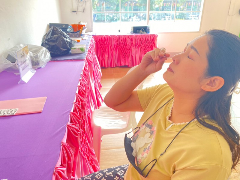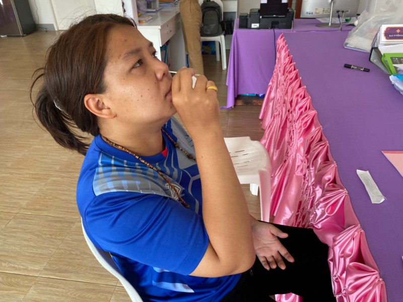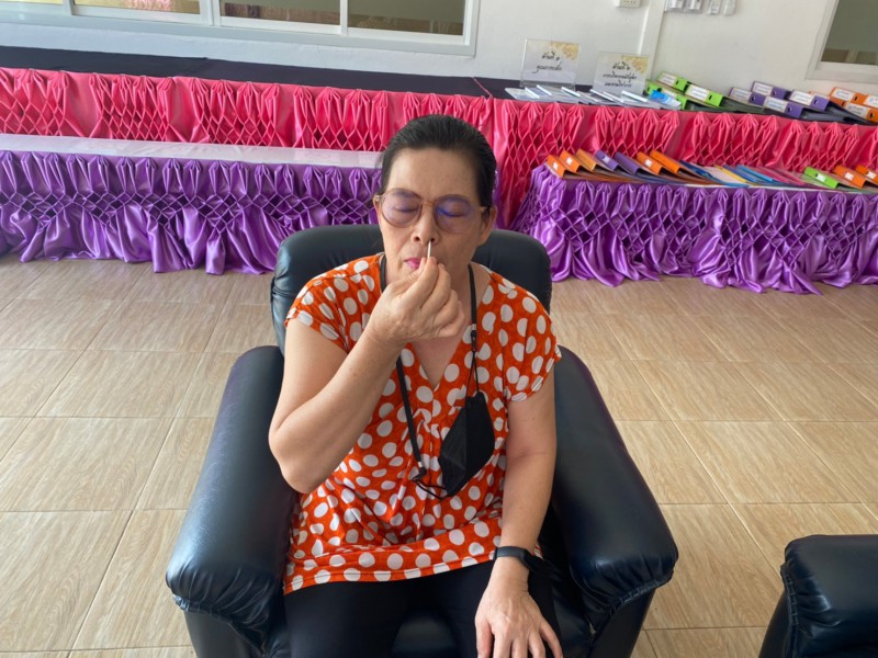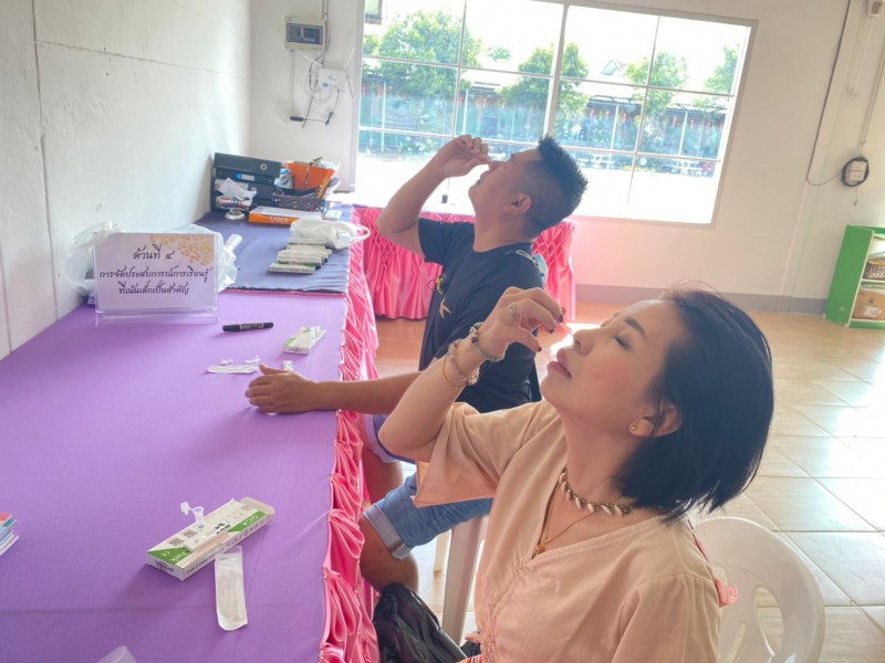 ผู้อำนวยการ, คณะครู, บุคลการทางการศึกษา โรงเรียนอนุบาลหัวฝาย ตรวจ ATK เชื้อไวรัสโควิด-19