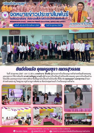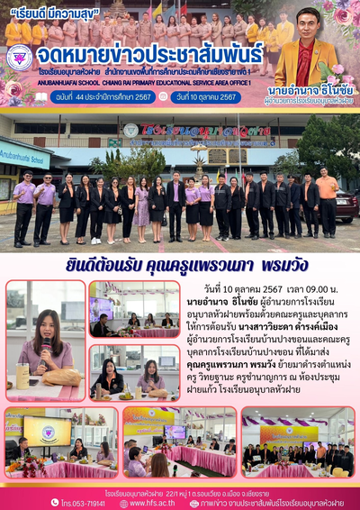 ฉบับที่ 44/2567 วันที่ 10 ต.ค. 67 ยินดีต้อนรับ ครูแพรวนภา พรมวัง ย้ายมาจากโรงเรียนบ้านปางขอน