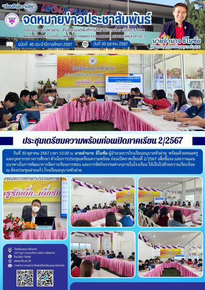 ฉบับที่ 46/2567 วันที่ 30 ต.ค. 67 ประชุมเตรียมความพร้อมก่อนเปิดภาคเรียนที่ 2/2567
