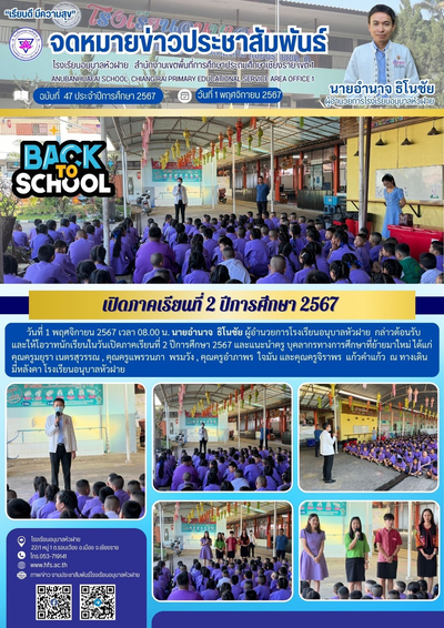 ฉบับที่ 47/2567 วันที่ 1 พ.ย. 67 เปิดภาคเรียนที่ 2 ปีการศึกษา 2567