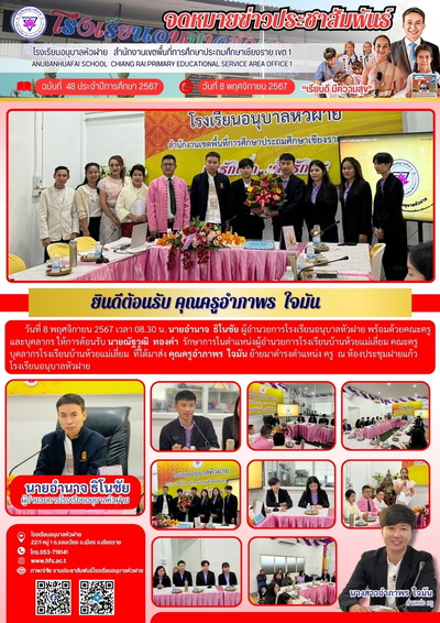ฉบับที่ 48/2567 วันที่ 8 พ.ย. 67 ต้อนรับ ครูอำภาพร ใจมัน ย้ายมาจากโรงเรียนบ้านห้วยแม่เลี่ยม