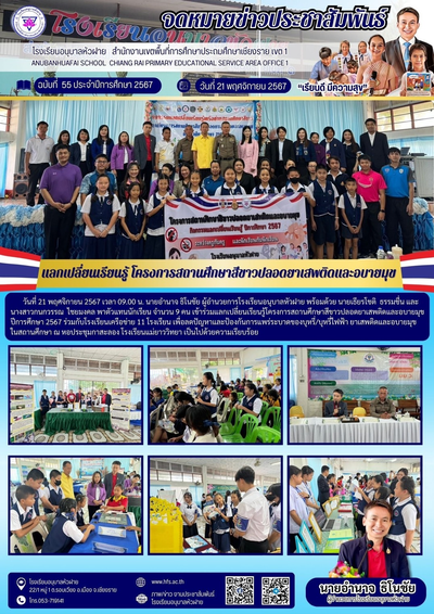 ฉบับที่ 55/2567 วันที่ 21 พ.ย. 67 แลกเปลี่ยนเรียนรู้ โครงการสถานศึกษาสีขาวปลอดยาเสพติดและอบายมุข