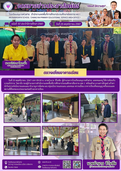 ฉบับที่ 57/2567 วันที่ 25 พ.ย. 67 ตรวจเยี่ยมอาคารเรียนที่ขออนุญาตรื้อถอนและสถานที่ที่จะของบประมาณก่อสร้างอาคารเรียน