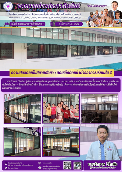 ฉบับที่ 58/2567 วันที่ 2 ธ.ค. 67 ความปลอดภัยในสถานศึกษา ติดเหล็กดัดหน้าต่างอาคารเรียน ชัิ้น 2