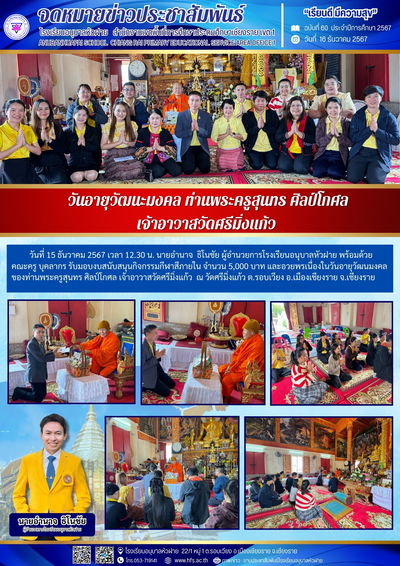 ฉบับที่ 60/2567 วันที่ 16 ธ.ค. 67 วันอายุวัฒนะมงคล ท่านพระครูสุนทร ศิลป์โกศล เจ้าอาวาสวัดศรีมิ่งแก้ว