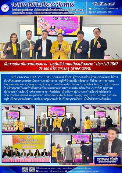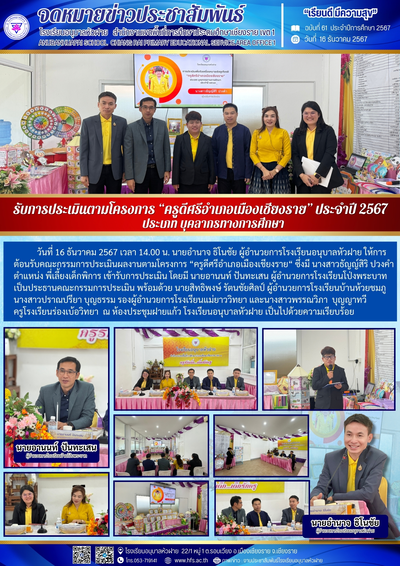 ฉบับที่ 61/2567 วันที่ 16 ธ.ค. 67 รับการประเมินตามโครงการ "ครูดีศรีอำเภอเมืองเชียงราย" ประจำปี 2567 ประเภทบุคลากรทางการศึกษา