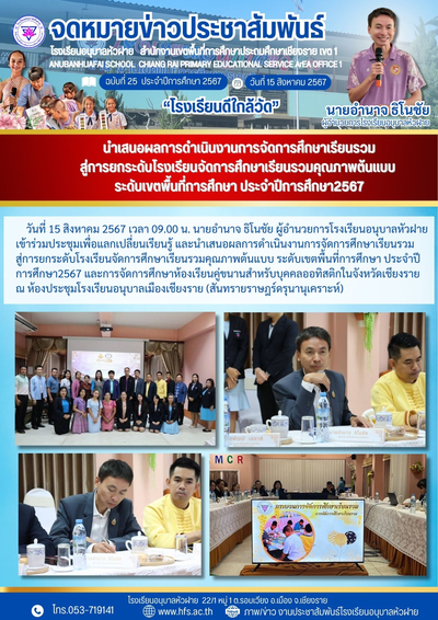 ฉบับที่ 25/2567 วันที่ 15 ส.ค. 67 นำเสนอผลการดำเนินงานการจัดการศึกษาเรียนรวม สู่กระบวนการยกระดับโรงเรียนฯ