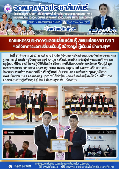 ฉบับที่ 27/2567 วันที่ 17 ส.ค. 67 งานมหกรรมวิชาการแลกเปลี่ยนเรียนรู้ สพป.เชียงรายเขต 1