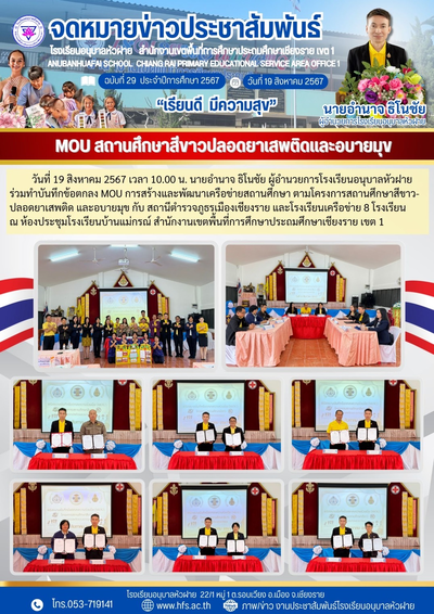 ฉบับที่ 29/2567 วันที่ 19 ส.ค. 67 MOU สถานศึกษาสีขาวปลอดยาเสพติดและอบายมุข