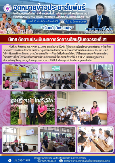 ฉบับที่ 30/2567 วันที่ 22 ส.ค. 67 นิเทศ ติดตามประเมินผลการจัดการเรียนรู้ในศตวรรษที่ 21