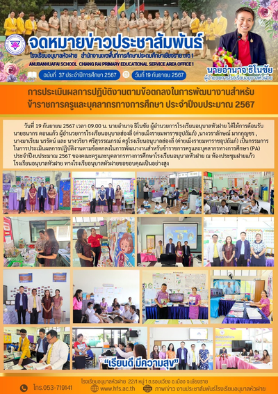 ฉบับที่ 37/2567 วันที่ 19 ก.ย. 67 การประเมินผลการพัฒนางานตามข้อตกลง (PA)สำหรับข้าราชการครูและบุคลากรทางการศึกษา ประจำปีงบประมาณ 2567