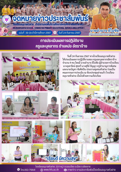 ฉบับที่ 39/2567 วันที่ 24 ก.ย.67 การประเมินผลการปฏิบัติงาน ครูและบุคลากร ตำแหน่งอัตราจ้าง