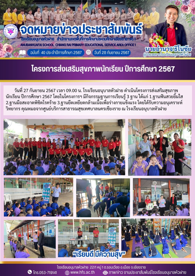 ฉบับที่ 40/2567 วันที่ 28 ก.ย.67 โครงการส่งเสริมสุขภาพนักเรียน ปีการศึกษา 2567