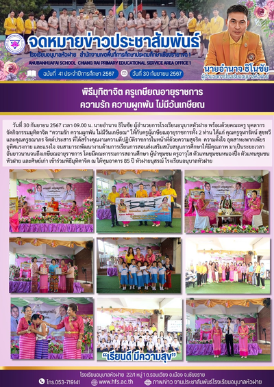 ฉบับที่ 41/2567 วันที่ 30 ก.ย.67 พิธีมุทิตาจิต ครูเกษียณอายุราชการ
