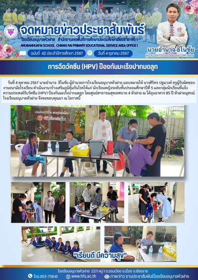 ฉบับที่ 42/2567 วันที่ 4 ต.ค. 67 ฉีดวัคซีน (HPV) ป้องกันมะเร็งปากมดลูก