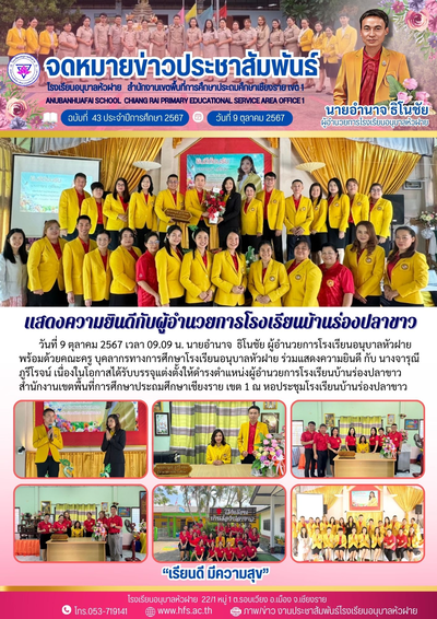 ฉบับที่ 43/2567 วันที่ 9 ต.ค. 67 แสดงความยินดีกับผู้อำนวยการโรงเรียนบ้านร่องปลาขาว