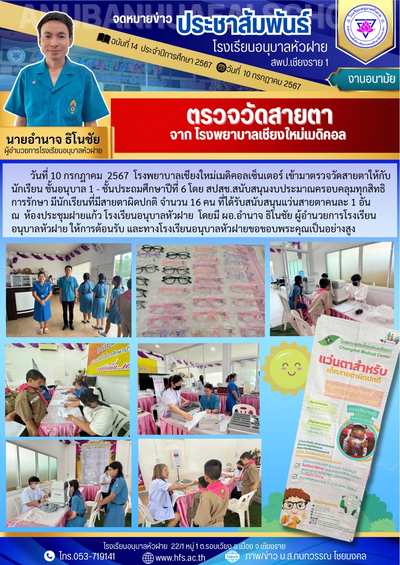ฉบับที่ 14/2567 วันที่ 10 ก.ค.67 ตรวจวัดสายตา จากโรงพยาบาลเชียงใหม่เมดิคอล
