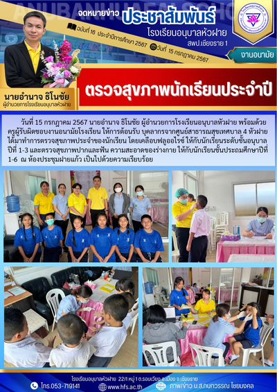 ฉบับที่ 15/2567 วันที่ 15 ก.ค.67 ตรวจสุขภาพนักเรียนประจำปี