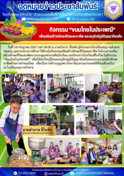 ฉบับที่ 17/2567 วันที่ 19 ก.ค.67 กิจกรรม "ขนมไทย ในประเพณี" เพื่อเสริมสร้างทักษะชีวิตและอาชีพ อนุรักษ์ภูมิปัญญาท้องถิ่น
