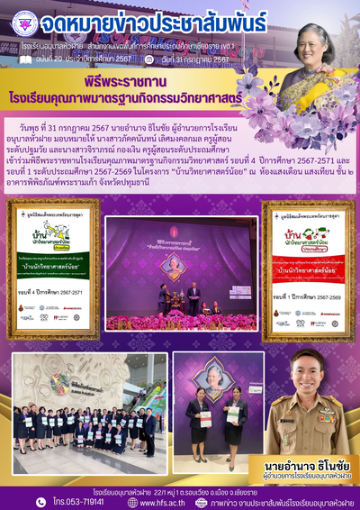 ฉบับที่ 20/2567 วันที่ 31 ก.ค.67 พิธีพระราชทาน โรงเรียนคุณภาพมาตรฐานวิทยาศาสตร์ "บ้านวิทยาศาสตร์น้อย"