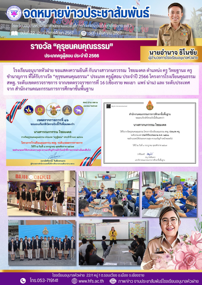 ฉบับที่ 22/2567 วันที่ 1 ส.ค. 67 รางวัล "คุรุชนคนคุณธรรม" ประเภทครูผู้สอน ประจำปี 2566