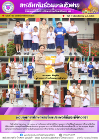 ฉบับที่ 20 วันที่ 7 ส.ค.66 มอบทุนการศึกษานักเรียนที่มีความประพฤติดีและมีจิตอาสา